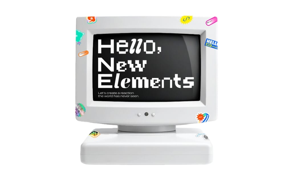 最初に目に入るところで「これはなんだろう?」と思ってスクロールしたくなる、という見た目にしたかったんです。「元素」のコンセプトは念頭に置いていましたが、元素そのもののイメージを強く出してしまうとむしろ何を伝えたいのか、どんな会社のWebサイトなのかわからなくなってしまうのでは、と思っていました。キャッチコピーの「Hello,New Elements」の「Hello」はプログラミングの最初の一歩の「Hello World」を意味しているので、コンピューターの要素を大きく見せて、元素についてはエッセンス程度にしました。