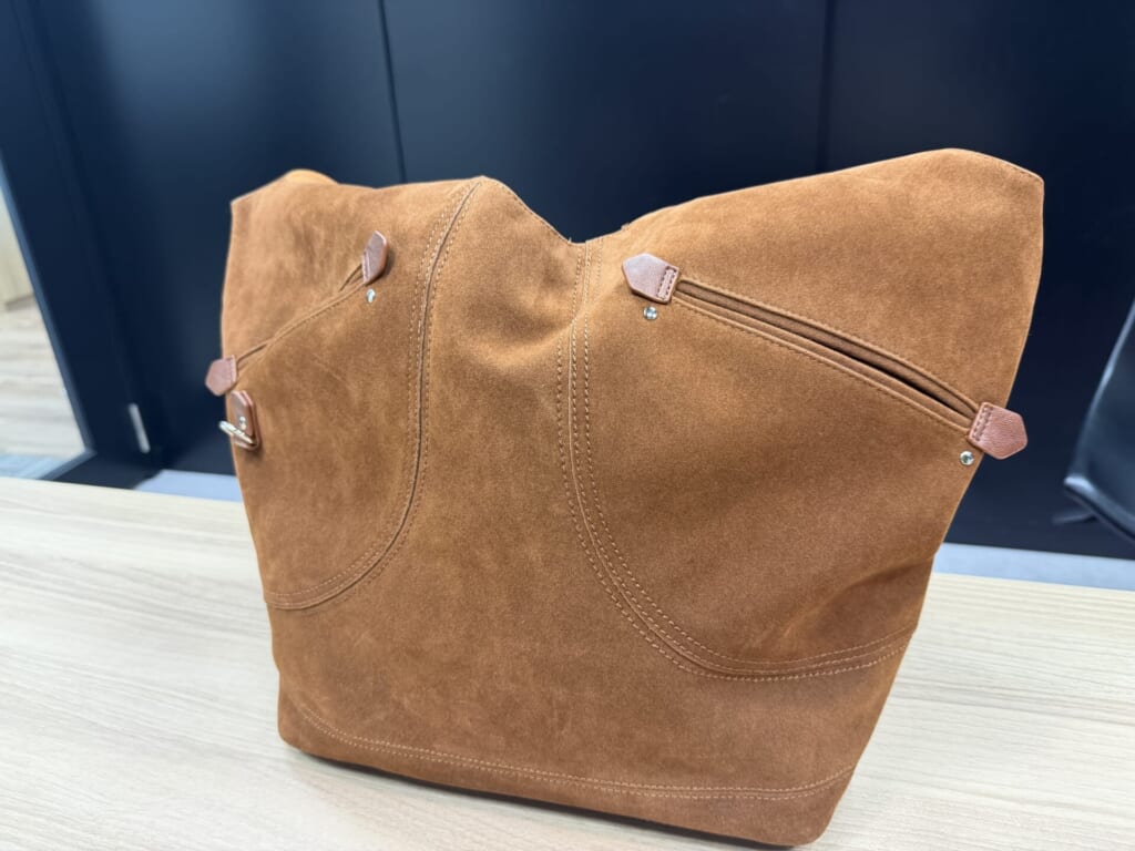 Oさんのカバンはこちら!あたたかみもありつつスタイリッシュなカバンです。さっそく、中のものを取り出してもらいました。