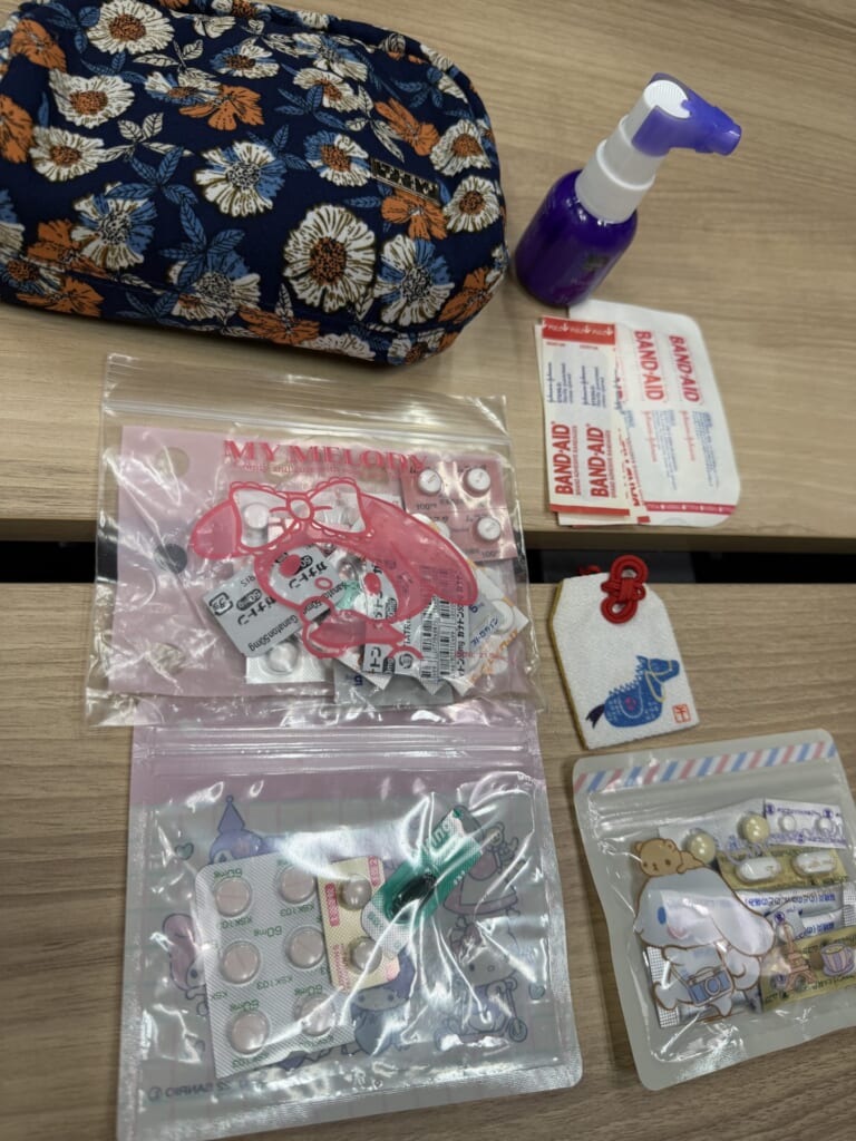 Oさん:このポーチは常備薬用ですね。お腹の調子が悪くなることが多いので、お守りのように持ち歩いています。なので、神社のお守りも薬と同じカテゴリとしてこのポーチに入れています(笑)