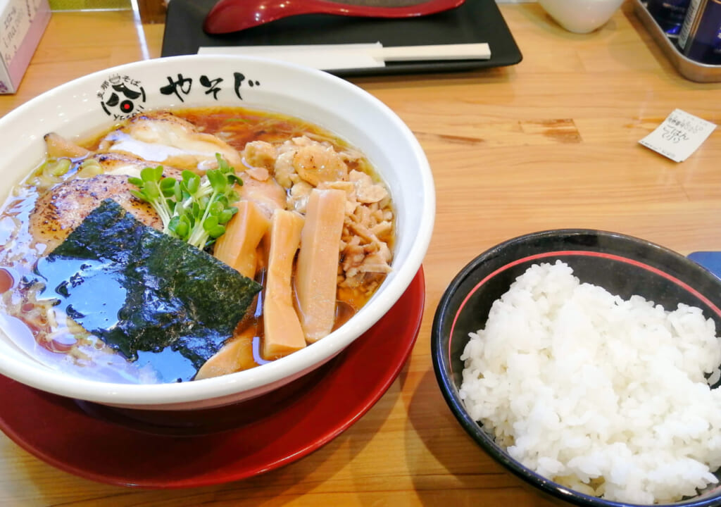 茨城編です。こちらは下館駅南口徒歩10秒の場所にある支那そばやそじさん。写真のメニューはチャーシュー麺です。