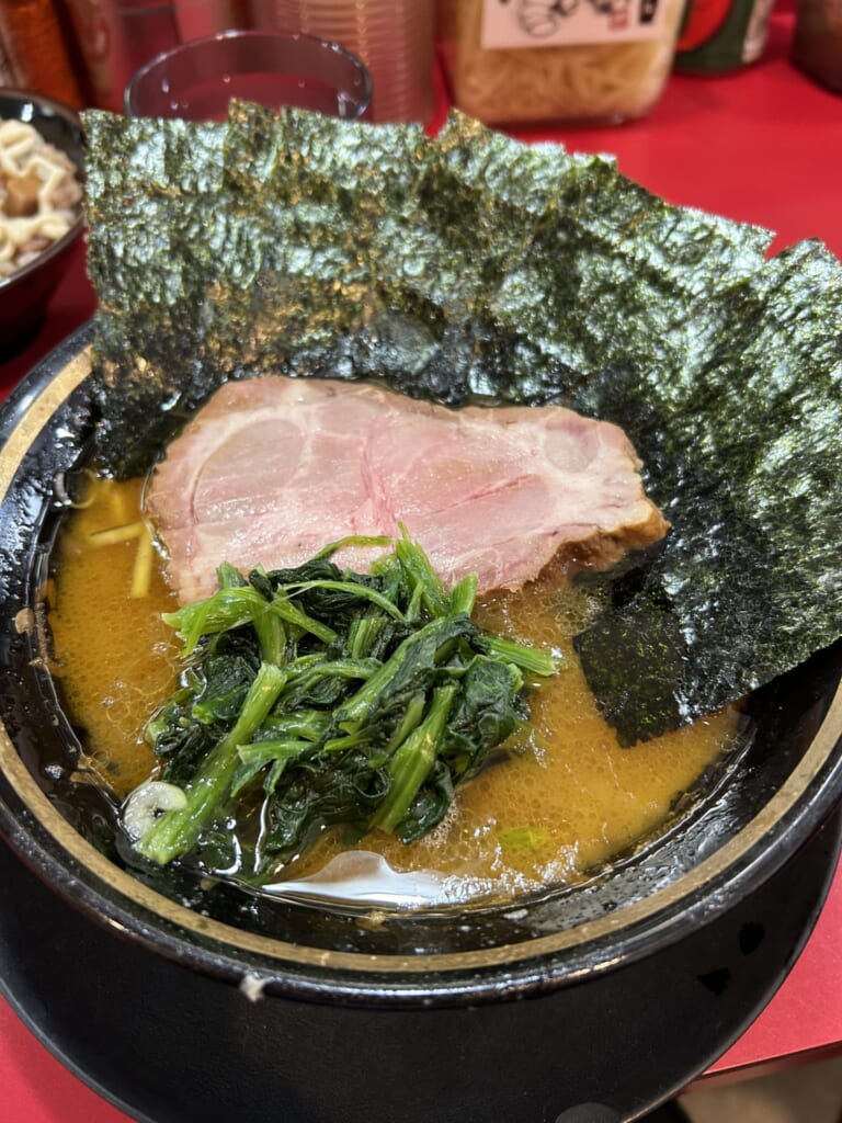 こちらは家系ラーメンの元祖吉村家でも修行経験がある店主さんのお店です。特徴としては特に醤油感が強めでキリっとした味わいのスープです。