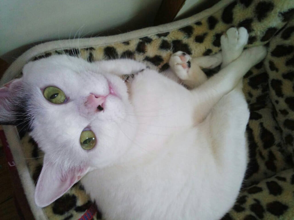 この愛くるしい姿をした猫は体重3キロ弱の小柄サイズであり、御年20歳越えの飼い猫界のでぇ(大)ベテランです