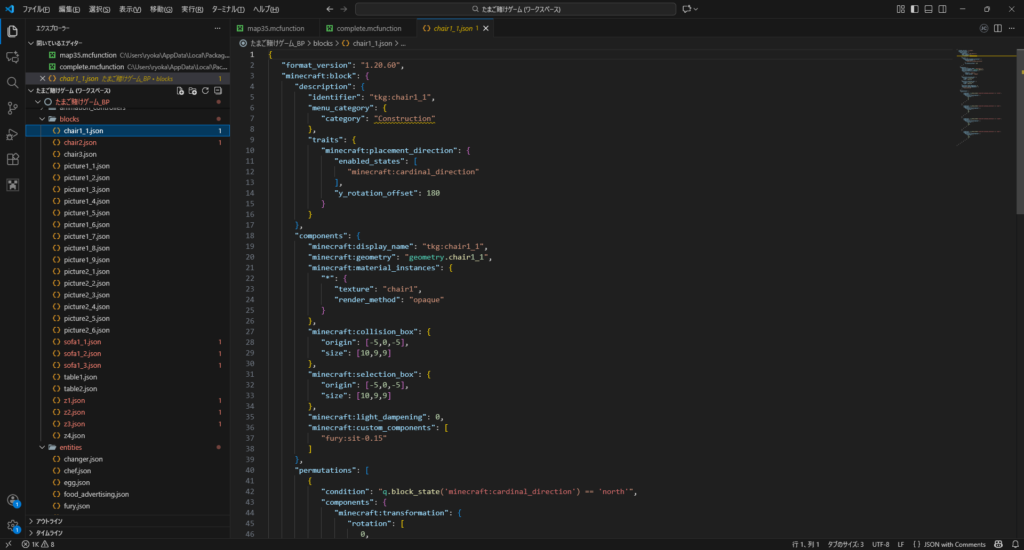 Minecraft内に元からあるものではなく、モデリングやテクスチャ等を作成して読み込ませています。