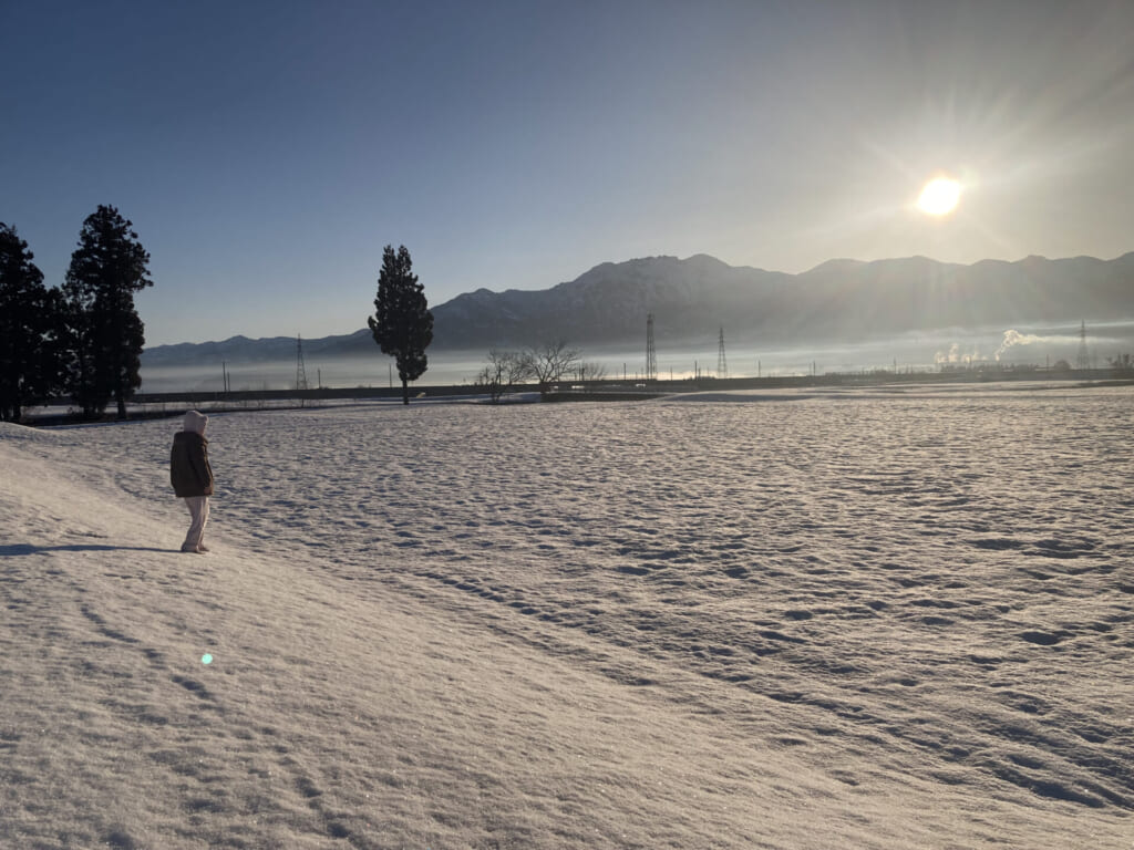 私の地元・新潟では、2月下旬頃から、晴れた早朝にだけ体験できます。
