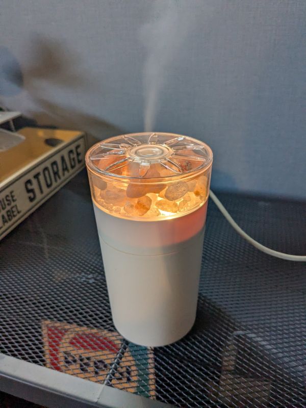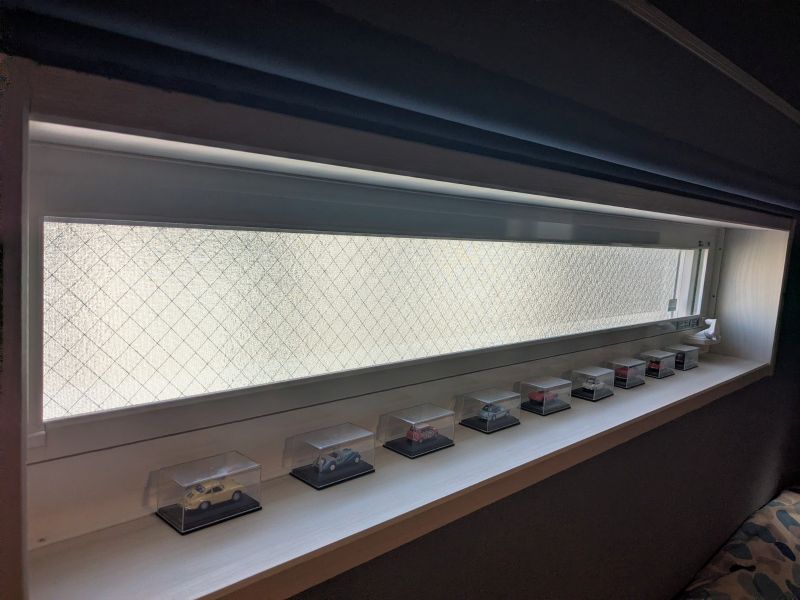 窓際にミニカー飾ってみたり、ダイソーで買ったアロマ加湿器を置いてみたり・・・