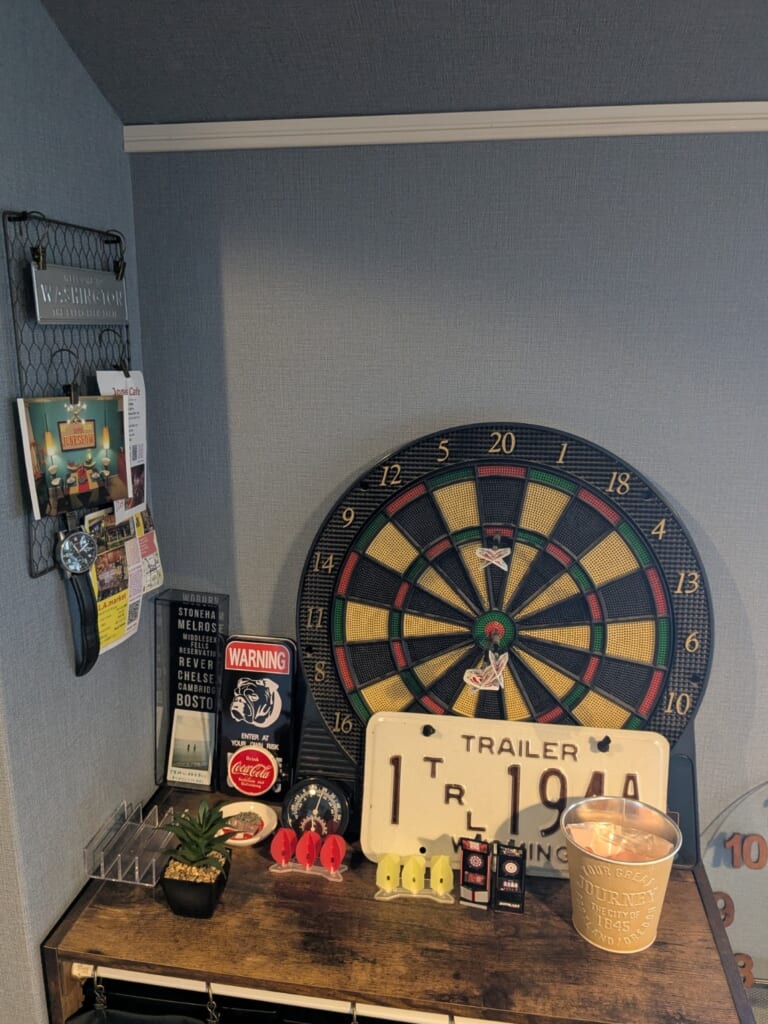 正面にはRoute66、アメリカのナンバープレートが飾ってあります。一番下はBACK TO THE FUTUREのクリアファイルなんですが、おしゃれだったので飾ってみましたw