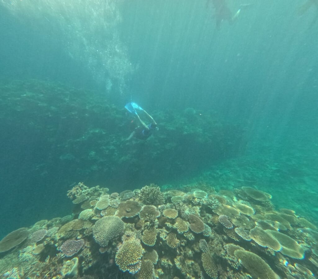 驚くほどの透明度で、カラフルな熱帯魚たちはもちろん、運良くウミガメにも出会うことができました。