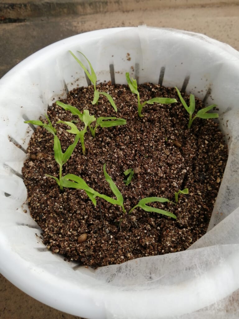 以下はエンツァイ(空芯菜)の種を植えてから10日ほどの状態です。