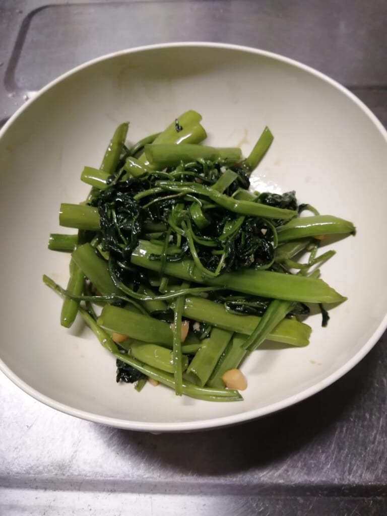 そして空芯菜炒めを作りましたが、無事おいしくできました。