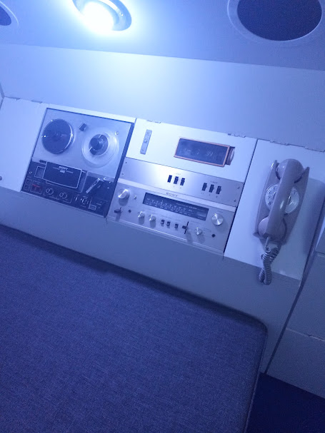 オープンリールデッキや電話、レシーバーが部屋の壁に備え付けられており、当時の最先端を走っていました。