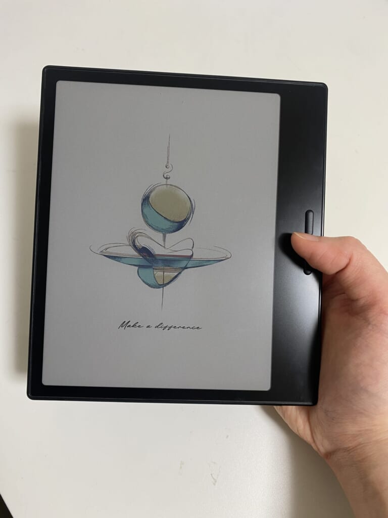 E Ink の柔らかい表示は紙に近く、スマホやPCのようなブルーライトの強さがありません。夜のリラックスタイムにも使いやすく、気づいたら長く読んでしまうくらい自然な読み心地です。