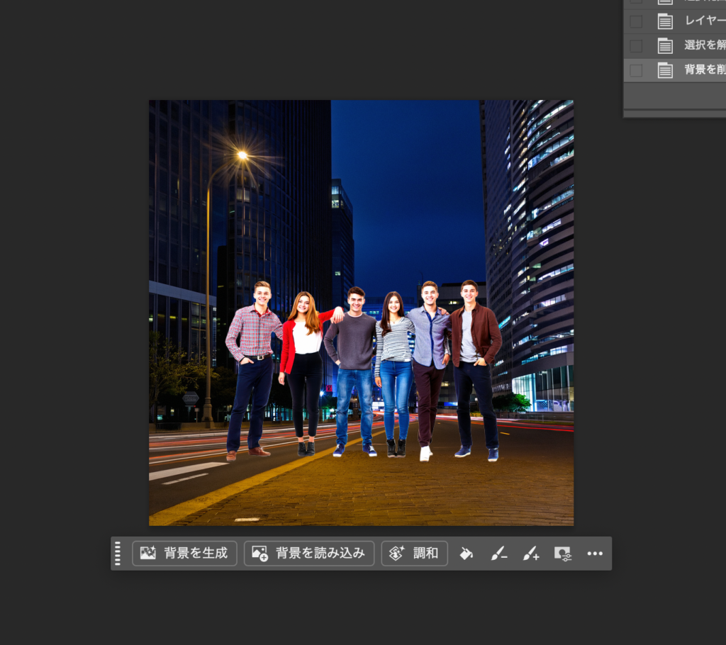 生成した「若者の集団」の背景を削除して。。。