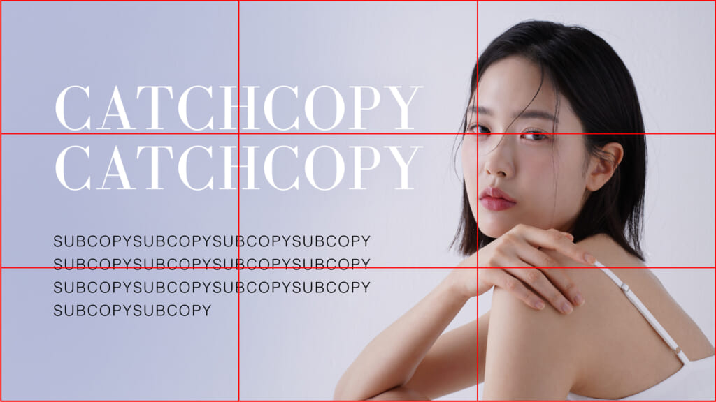 例えば、「人物写真がどーんと配置されていて、それでいてキャッチコピーやサブコピーもちゃんと見せたい」という理想を掲げて画像(またはメインビジュアル)を制作しようとしたとします。