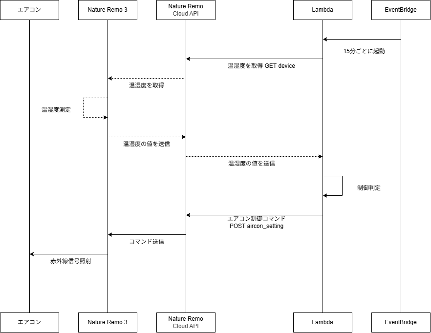 - Lambda が 15分ごとに起動し、自動で室温・湿度をチェック