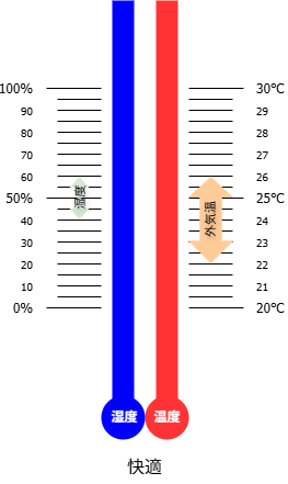 湿度は 40~60%程度が望ましく、乾燥や蒸し暑さを防ぎます。