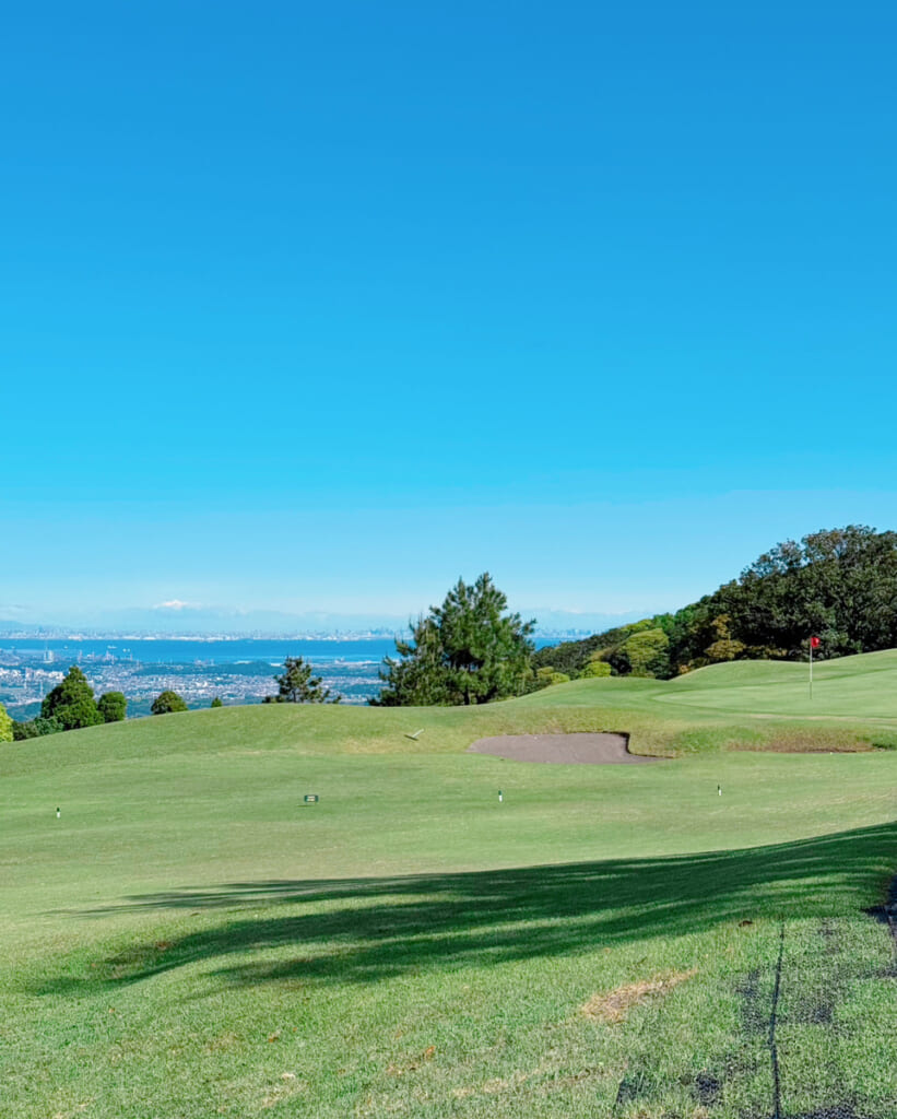 東京湾が一望できる爽快なロケーションで、まるで別世界のような気分。最高のテンションでラウンド開始です!