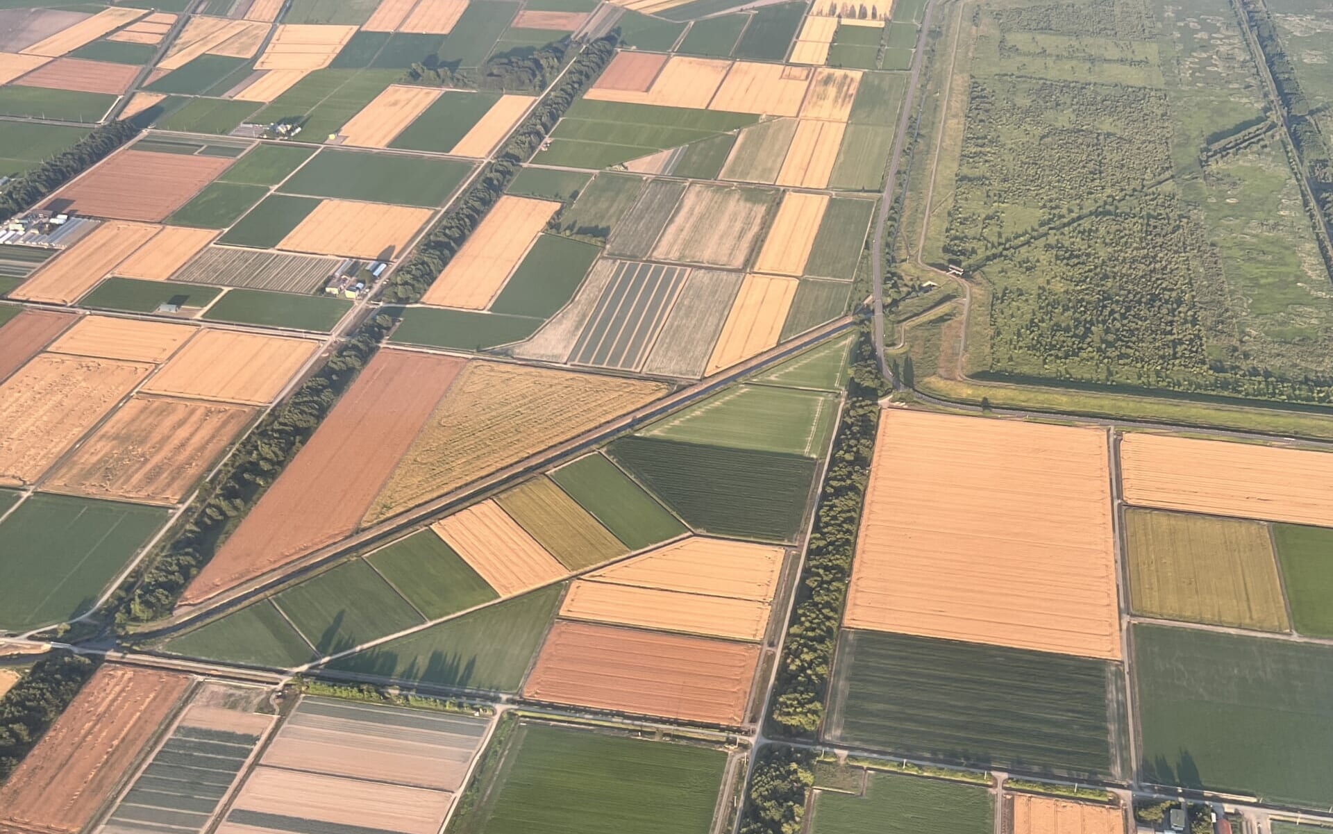 北海道の大地を上から見るとカラフルな畑が広がってました。地理の問題でありそうな地形とカラフルさですね。
