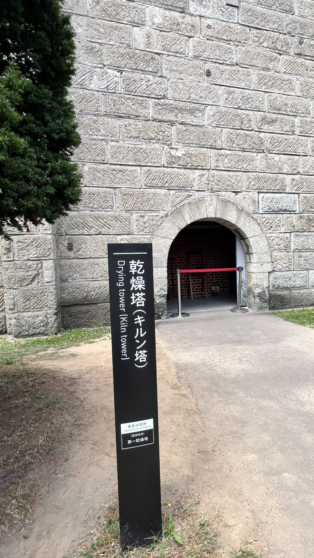移動をしたら蒸留所見学のツアーの受付を済ませます。済ませると余市蒸留所の看板?がお出迎え