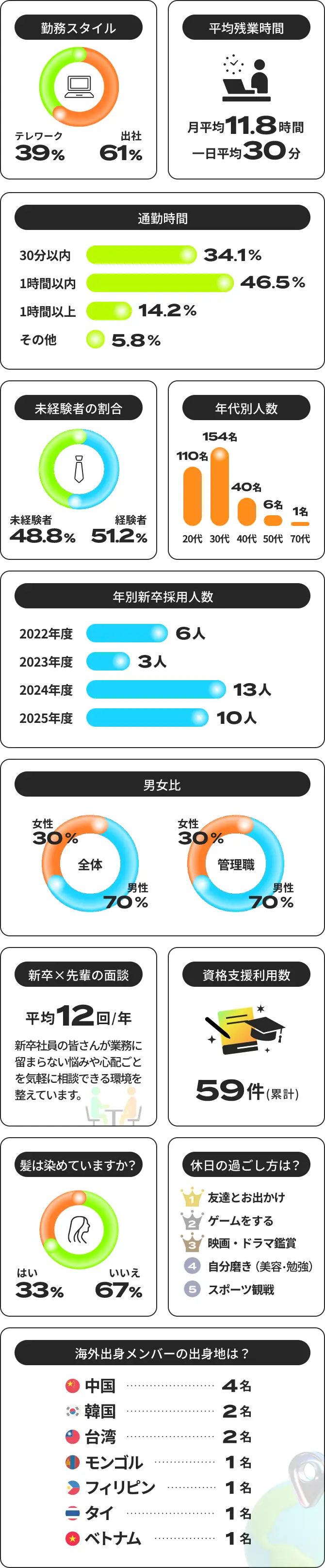 コアテックでは、私生活の充実が英気を養い、仕事の生産性向上につながっていくと考えており、毎月の残業時間は平均15時間を下回っています。